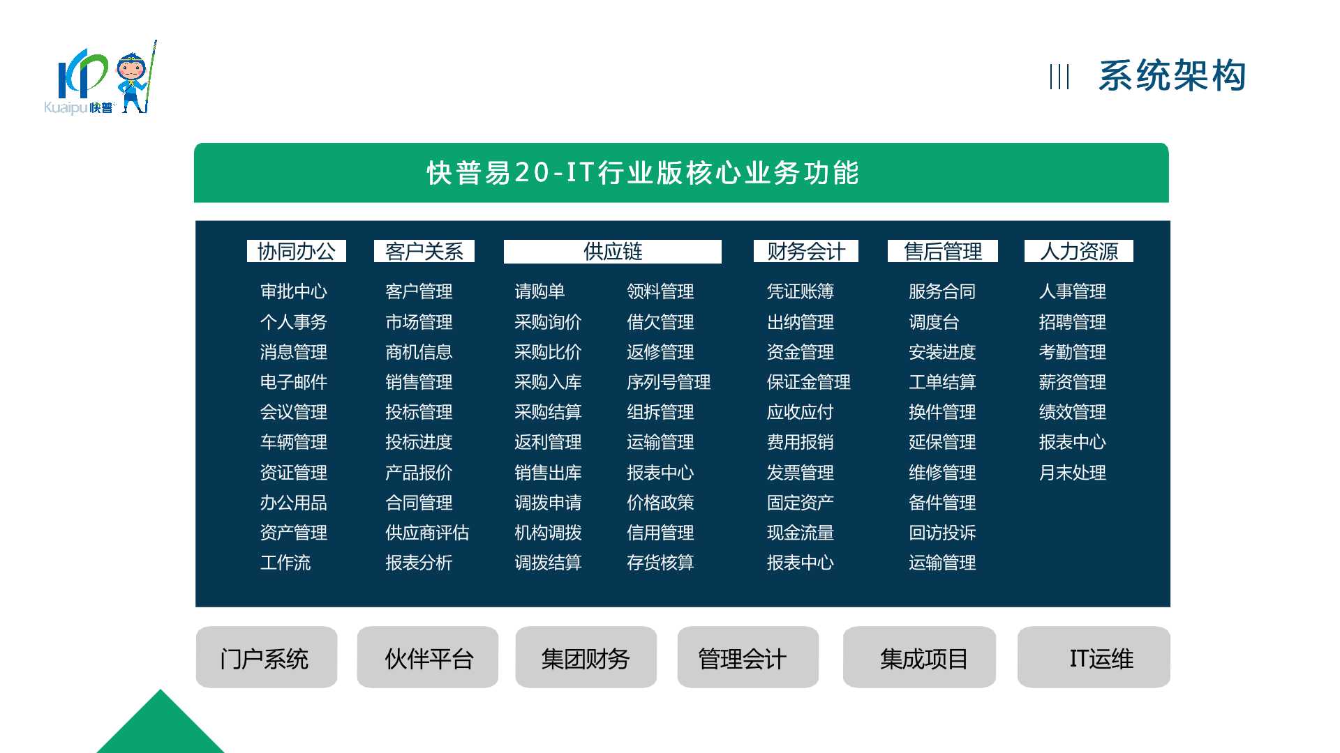 快普易20(IT行業(yè)版)為IT行業(yè)提供一站式、全流程、業(yè)財(cái)一體的數(shù)字化管理平臺(tái),解決企業(yè)的資金、客戶、銷售、服務(wù)等管理難題,通過(guò)數(shù)字化轉(zhuǎn)型提升盈利能力!
