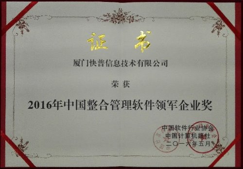 廈門快普連續(xù)五年受邀參加軟博會。廈門快普作為中國整合管理的倡導者、推動者和領導者,在公司創(chuàng)立時就將“整合管理”作為企業(yè)的發(fā)展戰(zhàn)略,并戰(zhàn)略性地提出:“將整合進行到底,把整合做到極致,讓所有企業(yè)實施整合管理”,立志成為中國企業(yè)整合管理專家,堅持把最前沿、最創(chuàng)新、最復雜、最有想法、含金量最高的IT行業(yè)作為公司發(fā)展的戰(zhàn)略性行業(yè),長期專注為系統(tǒng)集成企業(yè)、軟件企業(yè)、智能化企業(yè)、工程企業(yè)及高新技術企業(yè)等這些關聯(lián)度很高的行業(yè)提供整體管理解決方案,用盡可能低的成本解決這些前沿創(chuàng)新的經(jīng)營管理模式,幫助這些企業(yè)實現(xiàn)管理升級,因此榮獲“2016年度中國整合管理軟件領軍企業(yè)獎”,廈門快普董事長溫祝平先生同時榮獲“2016年度中國整合管理軟件領軍人物獎”!