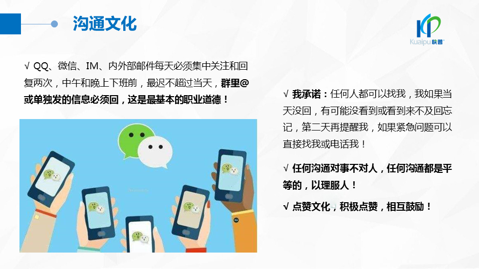 2018年9月,快普董事長(zhǎng)溫祝平先生發(fā)表《快普經(jīng)營(yíng)哲學(xué)2.0》,指出“以人為本、經(jīng)營(yíng)人心”的經(jīng)營(yíng)理念,強(qiáng)調(diào)進(jìn)一步建設(shè)“幸福企業(yè)文化”的重要性。