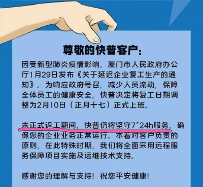 公司第一時間發(fā)布服務(wù)公告:未正式返工期間,快普將為客戶提供7*24h服務(wù),客戶可通過遠(yuǎn)程方式獲取運維及項目實施等服務(wù)。