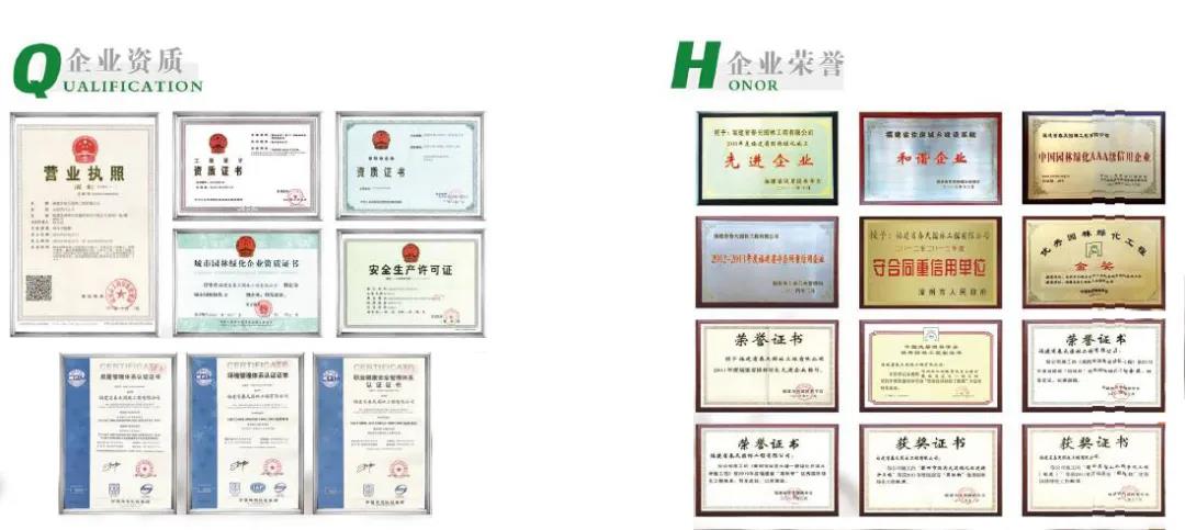 福建省春天生態(tài)科技股份有限公司先后獲得國家授予的“國家高新技術(shù)企業(yè)”、“中國風(fēng)景園林學(xué)會優(yōu)秀園林工程大金獎”、“福建省守合同、重信用單位”、“福建省城鄉(xiāng)建設(shè)系統(tǒng)和諧企業(yè)”等榮譽(yù)稱號。