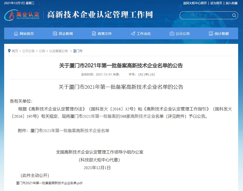 自接到廈門市科技局發(fā)出的高新技術企業(yè)申報通知后,廈門快普踴躍報名,積極配合申報工作,認真準備申報材料。經合規(guī)性審查、專家評審、市高新技術企業(yè)認定管理辦公室聯(lián)合審核,廈門市上報的第一批備案國家級高企名單在國家高新技術企業(yè)認定管理工作網上公示,廈門快普憑借穩(wěn)健的經營表現和先進的技術實力位列榜單,并獲得正式批復!