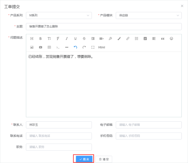 點擊“提交工單”,描述您的具體問題。圖文形式,問題描述更直觀、更清晰。