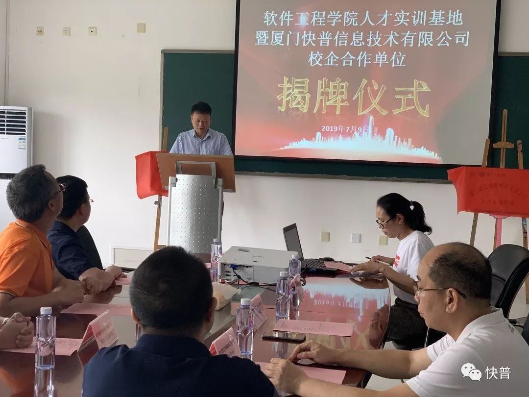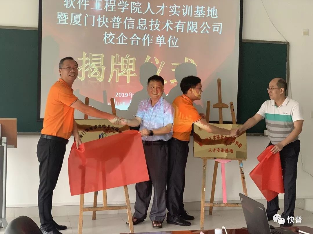 此次揭牌儀式在廈門理工軟件工程學院舉行。廈門理工軟件工程學院副院長肖偉東,軟件工程系主任萬念斌、教研室主任劉斌等領(lǐng)導(dǎo)老師,以及優(yōu)秀學生代表,快普董事長溫祝平、人力資源總監(jiān)胡延友、技術(shù)總工蘭和翔共同出席了此次活動。